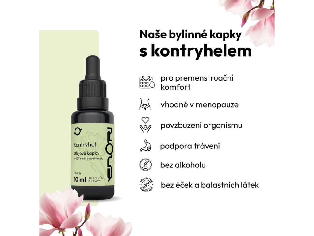Vyzkoušejte unikátní kontryhelové kapky Enori. Naše bylinné tinktury jsou vyrobeny bez použití alkoholu, vysokého tlaku a teploty, takže nedochází k narušení přírodních složek a snížení jejich účinnosti. Při procesu extrakce jsme se rozhodli nahradit ethanol zkapalněným plynem a jako nosné médium jsme zvolili kokosový MCT olej, který zaručuje vynikající stabilitu a vstřebatelnost účinných látek. Díky tomuto inovativnímu způsobu výroby můžeme z pokladů přírody vytěžit maximum.